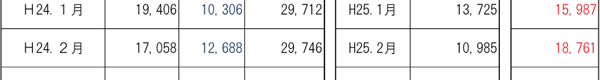 | Bさん宅 | 2月 | 5,777円 | 2,640円 | 3,137円 |