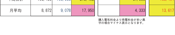 | 月 | 電気使用料 | 売電額 | 実際にかかった光熱費 | |