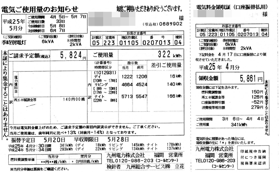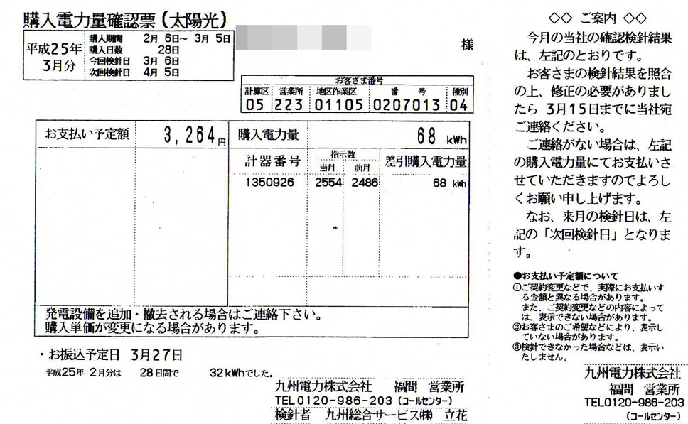 右は、余った分の電気を九州電力が買い上げた分の「購入電力量確認票」です。